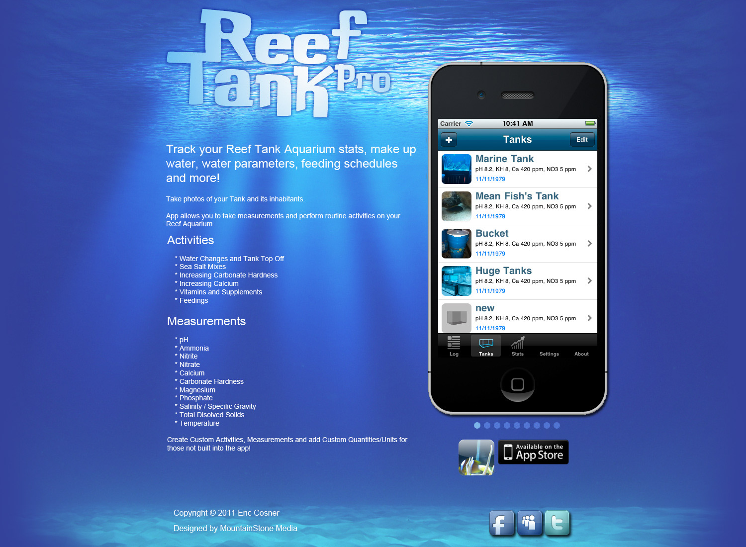 A mockup website I made for the iPhone app Reef Tank Pro
